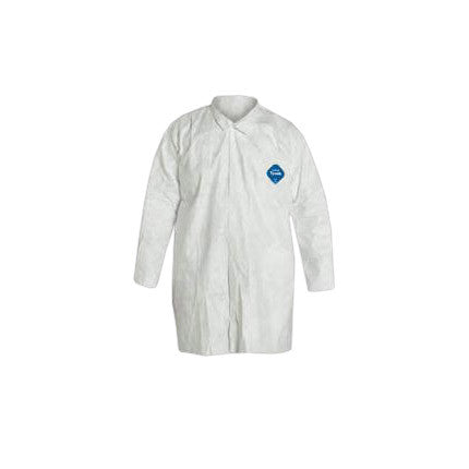 The Tyvek® Frock is made of a uniquely manufactured spunbonded olefin. This protective fabric has become a standard in the industry for worker safety material strength and durability.