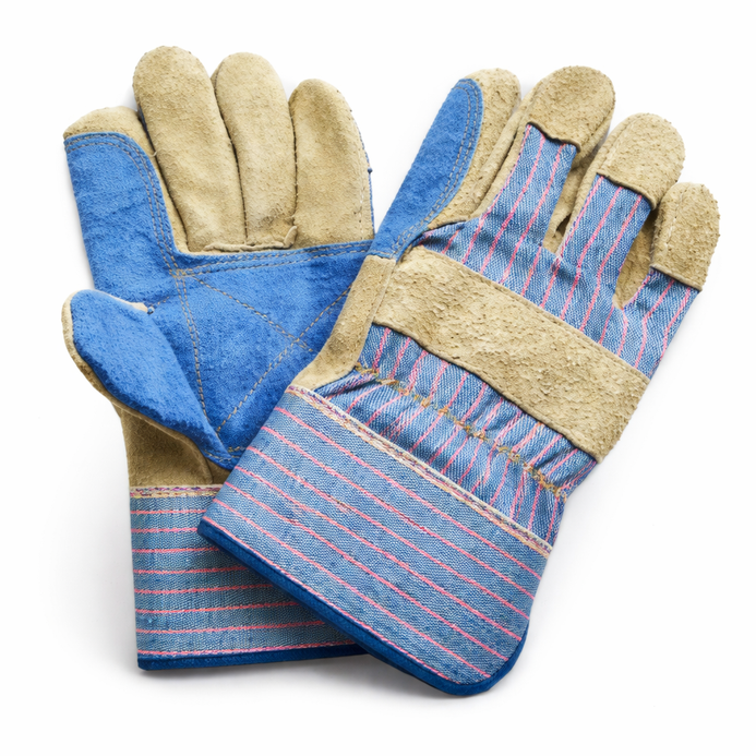 These split leather gloves with denim back and cuff are ideal for landscaping, construction, farming, iron and steel work, assembly, and any general purpose application requiring leather protection. The denim back isn't the only feature for this glove. The added palm patch also provides additional wear and tear and a firm grip.