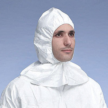 A Tyvek hood is used to provide head and facial protection against dry particulates, contaminants, and hazardous workplace materials in cleanroom, laboratory, and industrial environments.