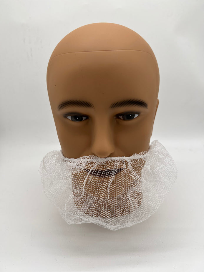 Disposable beard nets are used to prevent facial hair contamination in food processing, cleanroom, pharmaceutical, and industrial environments.