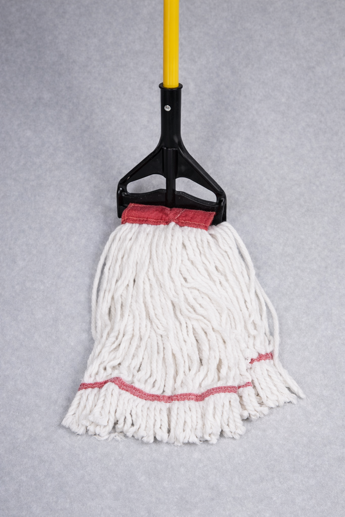 This spaghetti mop is ideal for removing lint and particulates. The mop features a rust preventative fiberglass handle and mop head connector. Individually sold.